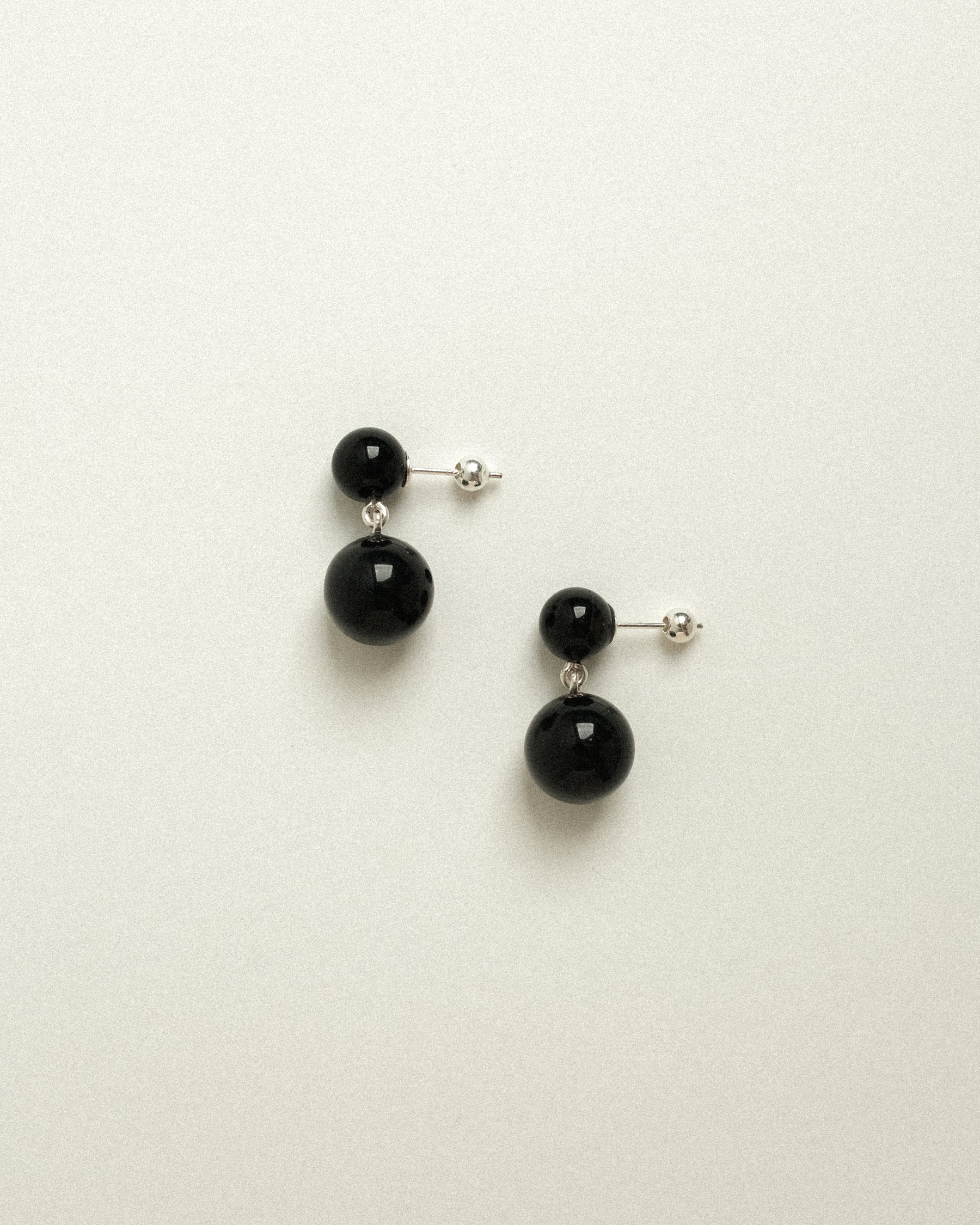Reha Double Onyx Bobble Dangle Stud Earrings