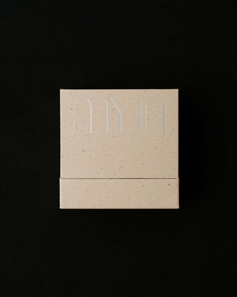 It began with a question we couldn’t shake in the studio: if our jewellery is quiet and sculptural, why should the box feel anonymous? So we moved towards papers with husk in them, materials that keep tiny speckles and soft grain from where they once came.