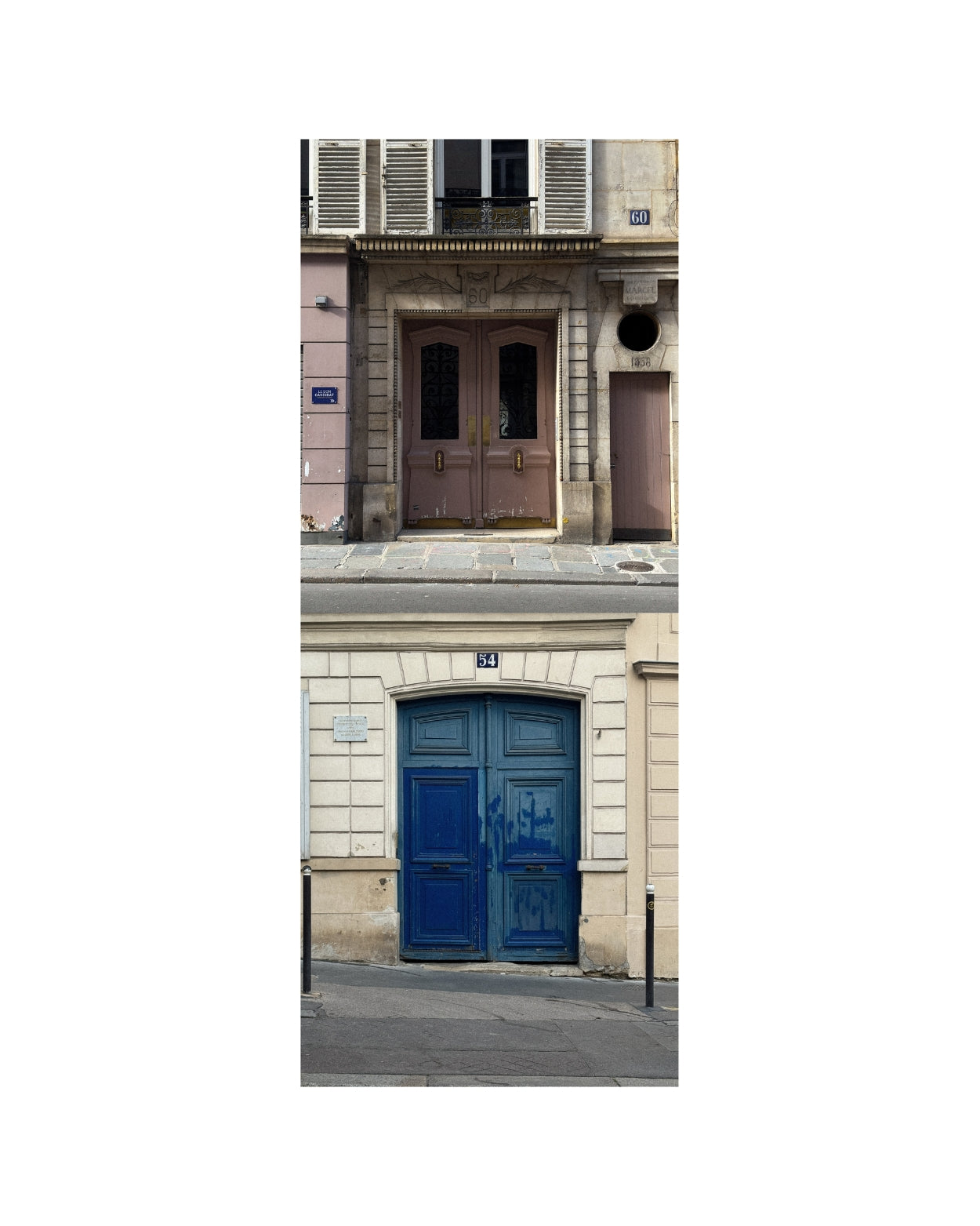 We photographed them. Then went back the next day in different light. Then mapped the streets to find more. Over several days we documented more than forty doors across six arrondissements, and what started as curiosity became something closer to obsession. We were seeing what two hundred years of paint and weather and hands had left behind
