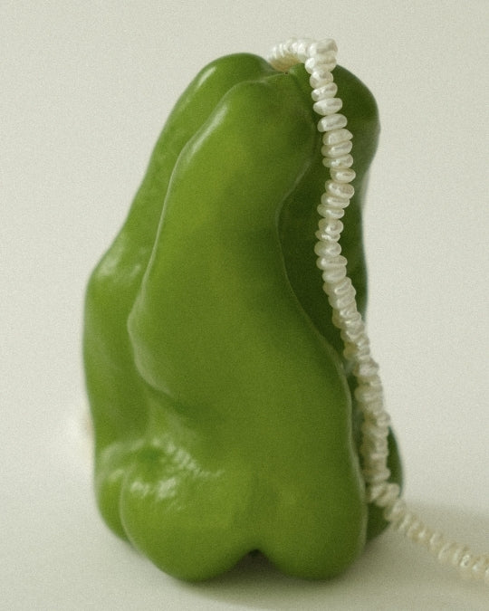 From the grocer to your wrist, a modern echo of Blossfeldt’s botanical studies. A line that feels almost drawn, finished with a single pearl like punctuation. The kind of detail you notice later, when you catch yourself in a mirror and think, quietly, yes.