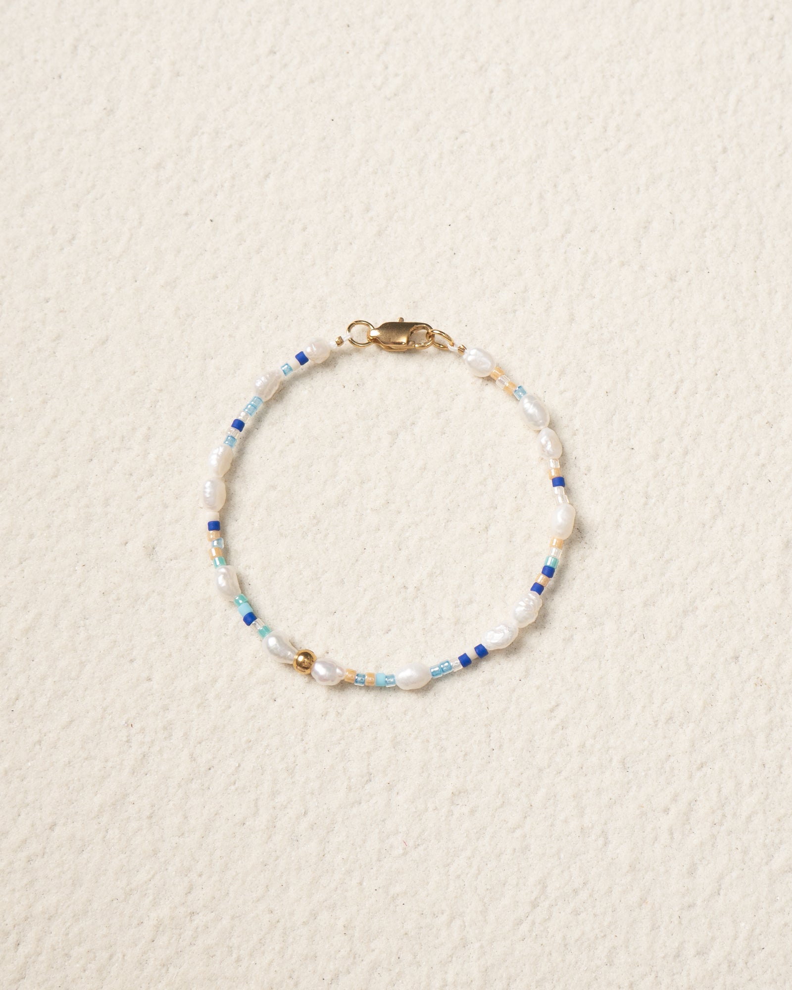 A delicate blend of freshwater pearls and multicolor Japanese glass beads, the Isla Bracelet captures the essence of the sea. Its soft blue hues and organic shapes evoke a sense of tranquility, making it a timeless piece for everyday.