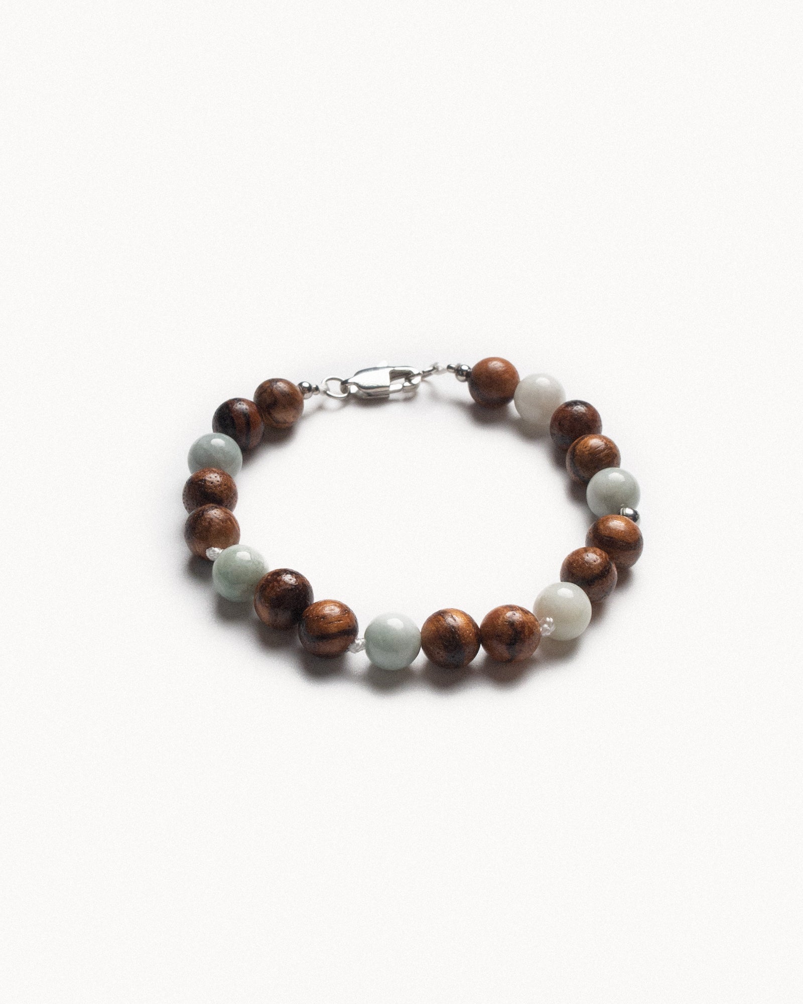 Eira weaves the grounding warmth of rosewood with the soft, protective energy of Burmese jade. Rosewood is cherished for its ability to anchor and calm, while jade has long been a symbol of harmony, prosperity, and gentle protection.