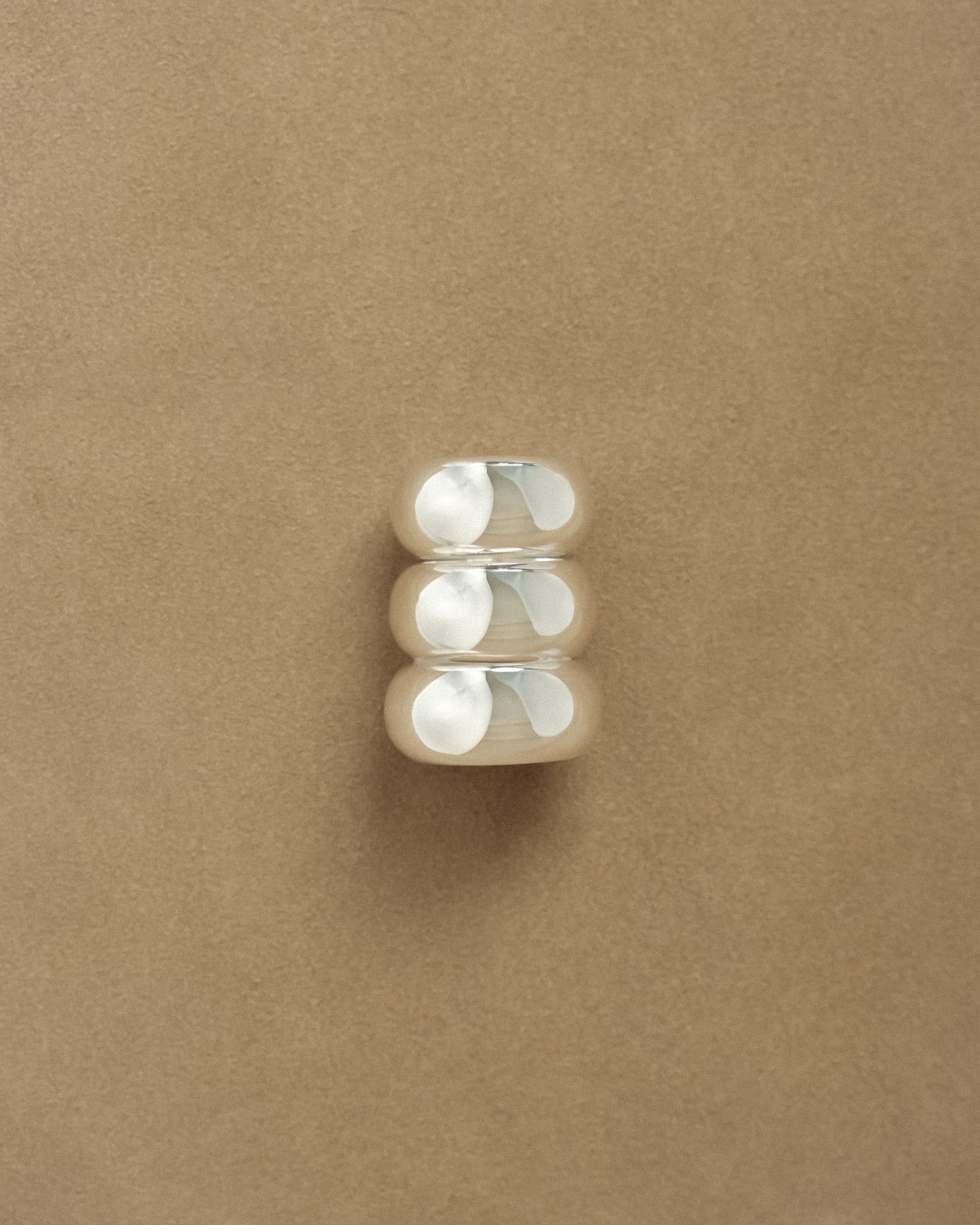 A classic, donut-shaped band ring that makes a statement with its rounded surface, blending elegance with a touch of playful charm.