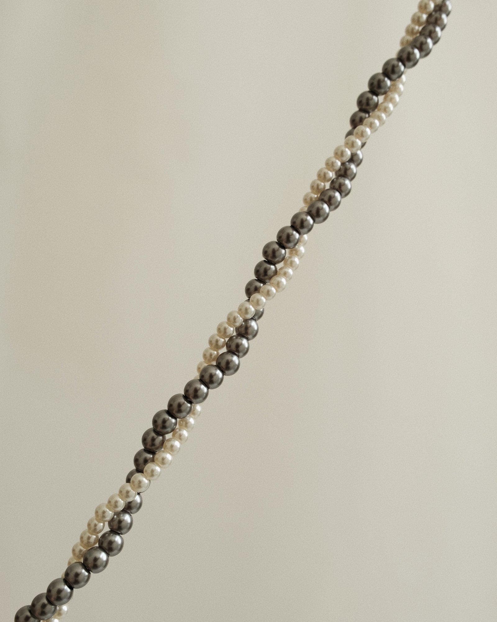 - Hand-knotted with grey and white crystal pearl.
