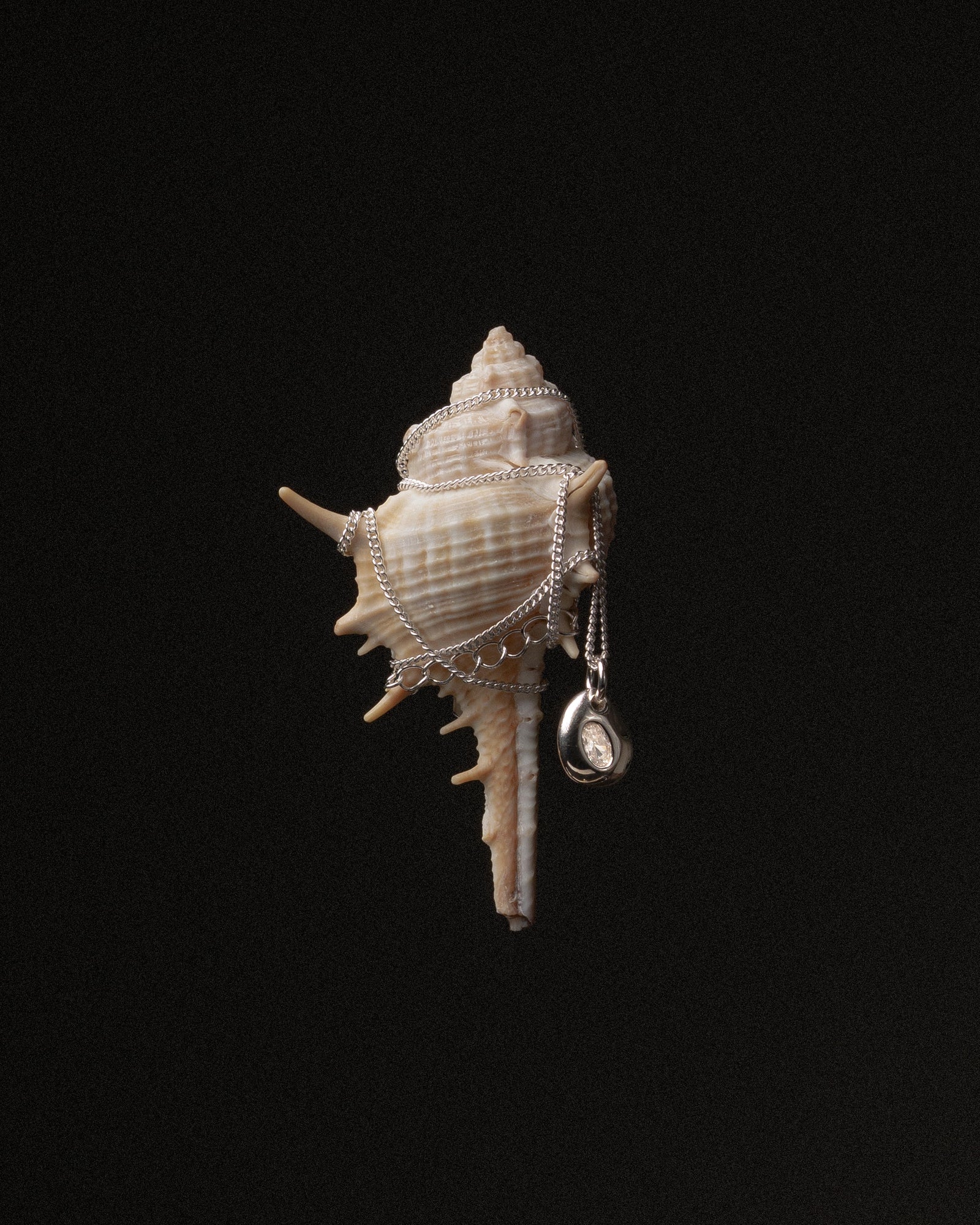 A cute bean-shaped pendant with a diamond that won’t go unnoticed. It adds a classic touch, perfectly blending charm and elegance, ensuring all eyes are drawn to it.